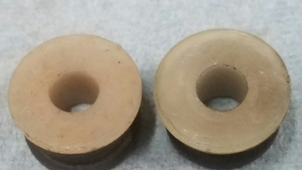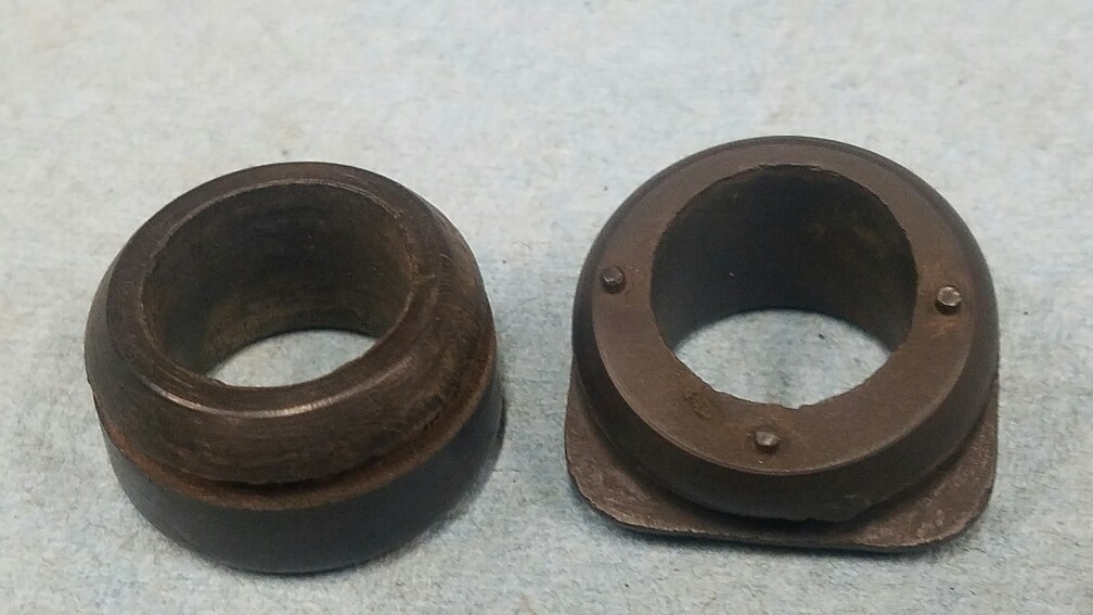 Original Back Drive bushing and grommet. Grommet has stepped insert and 4 release dots from the mold. Very nice original piece. This is the one that goes on the bracket mounted to the frame. $35. Ppff