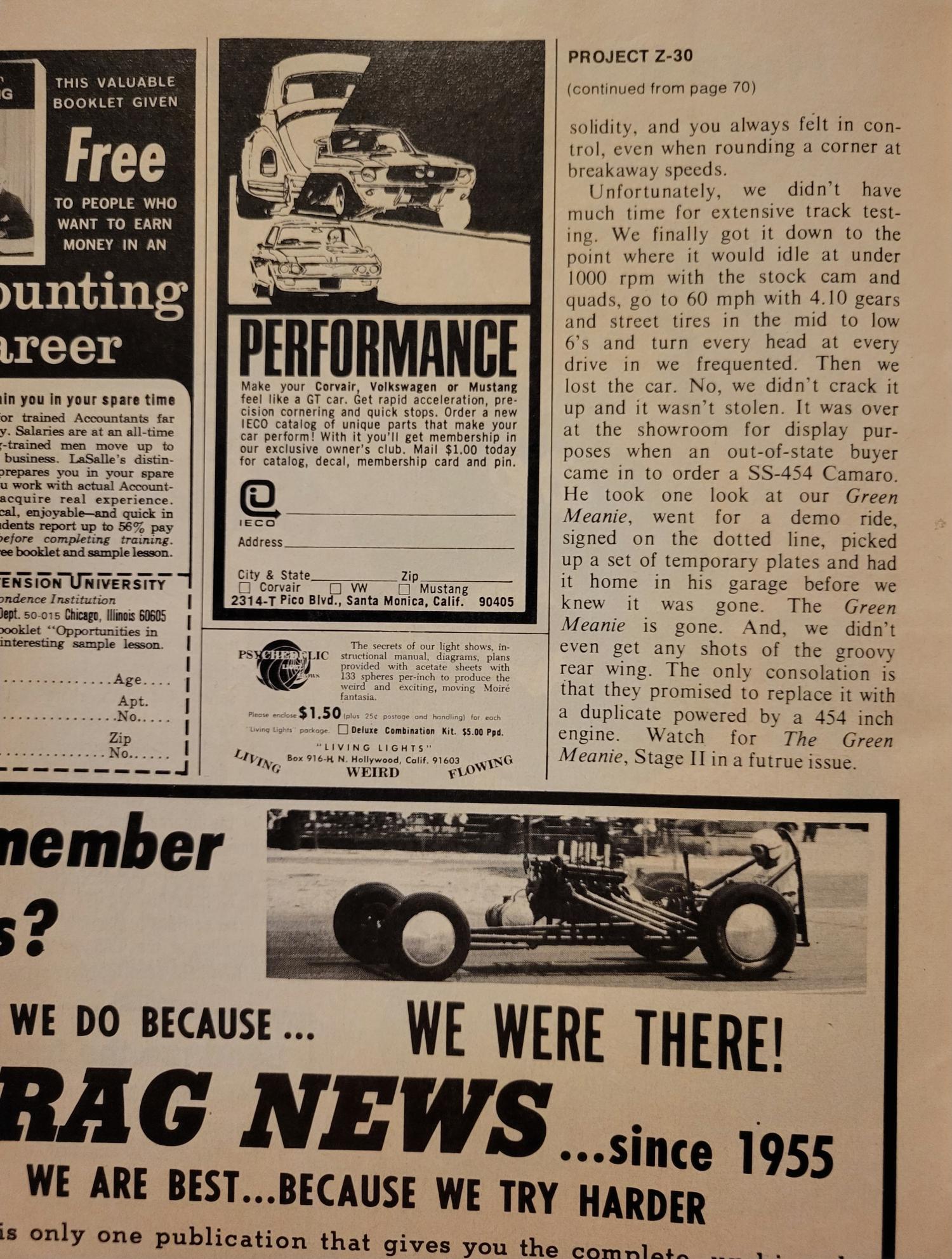 Project Z/30 The Green Meanie, Hi Performance Cars February 1970