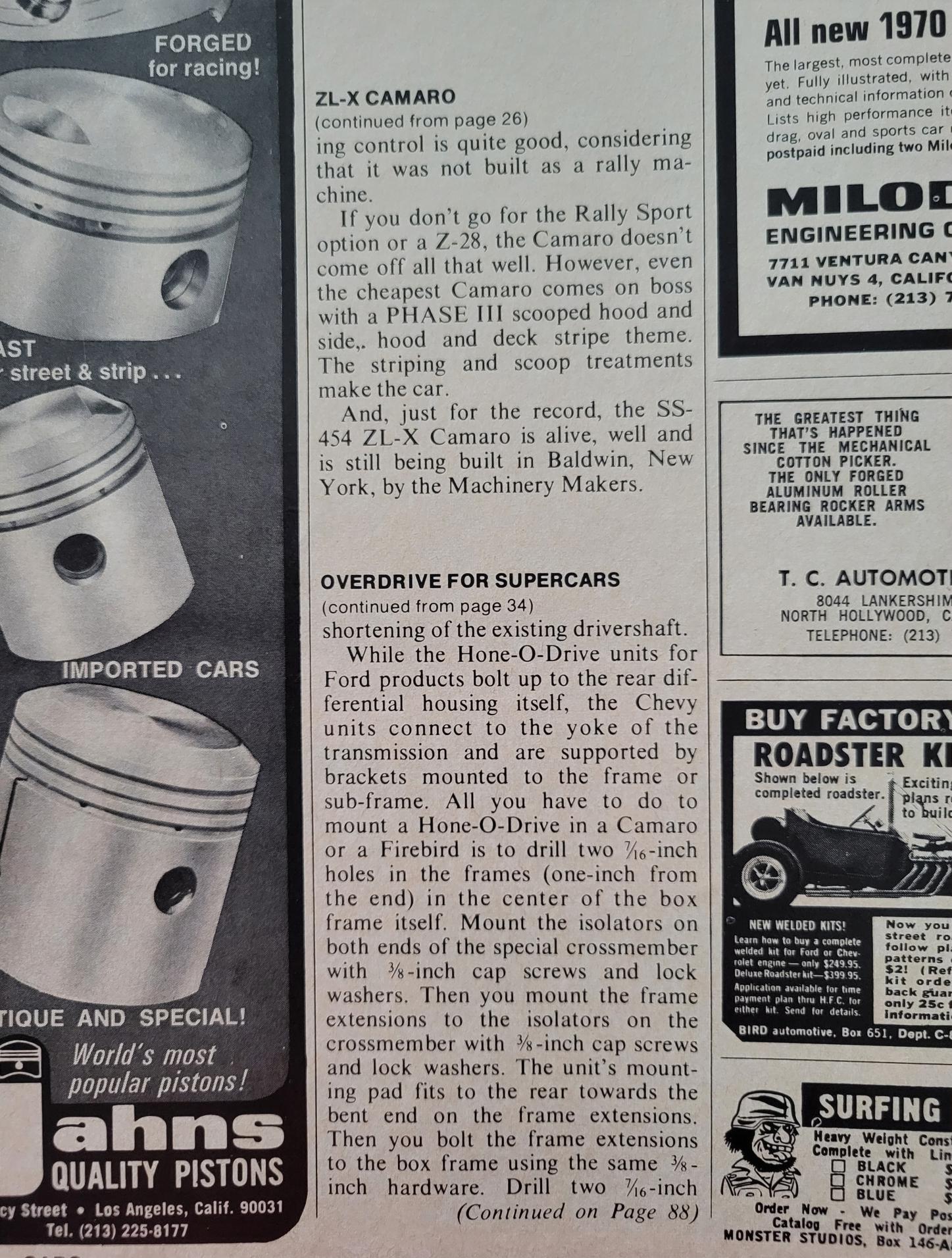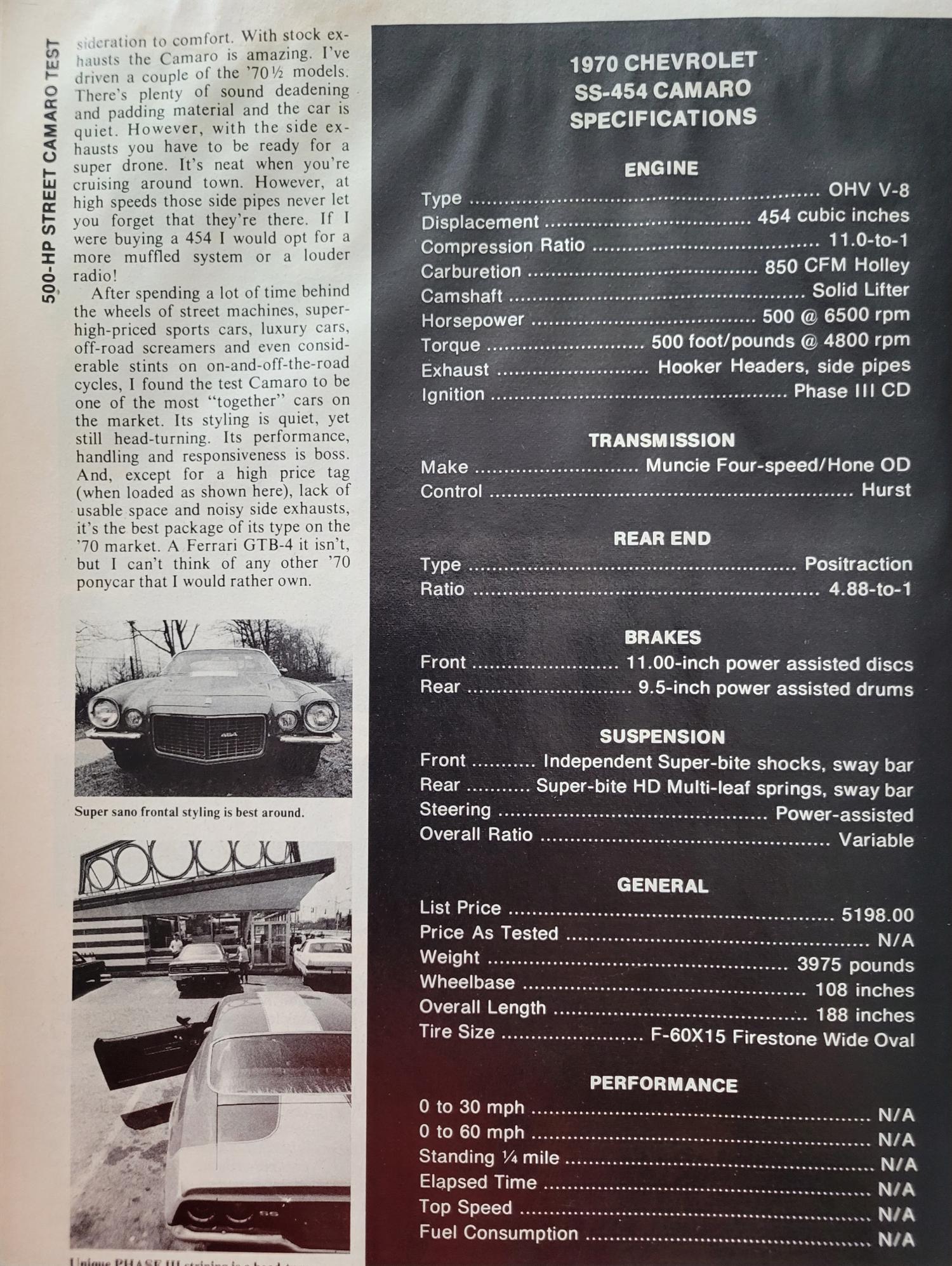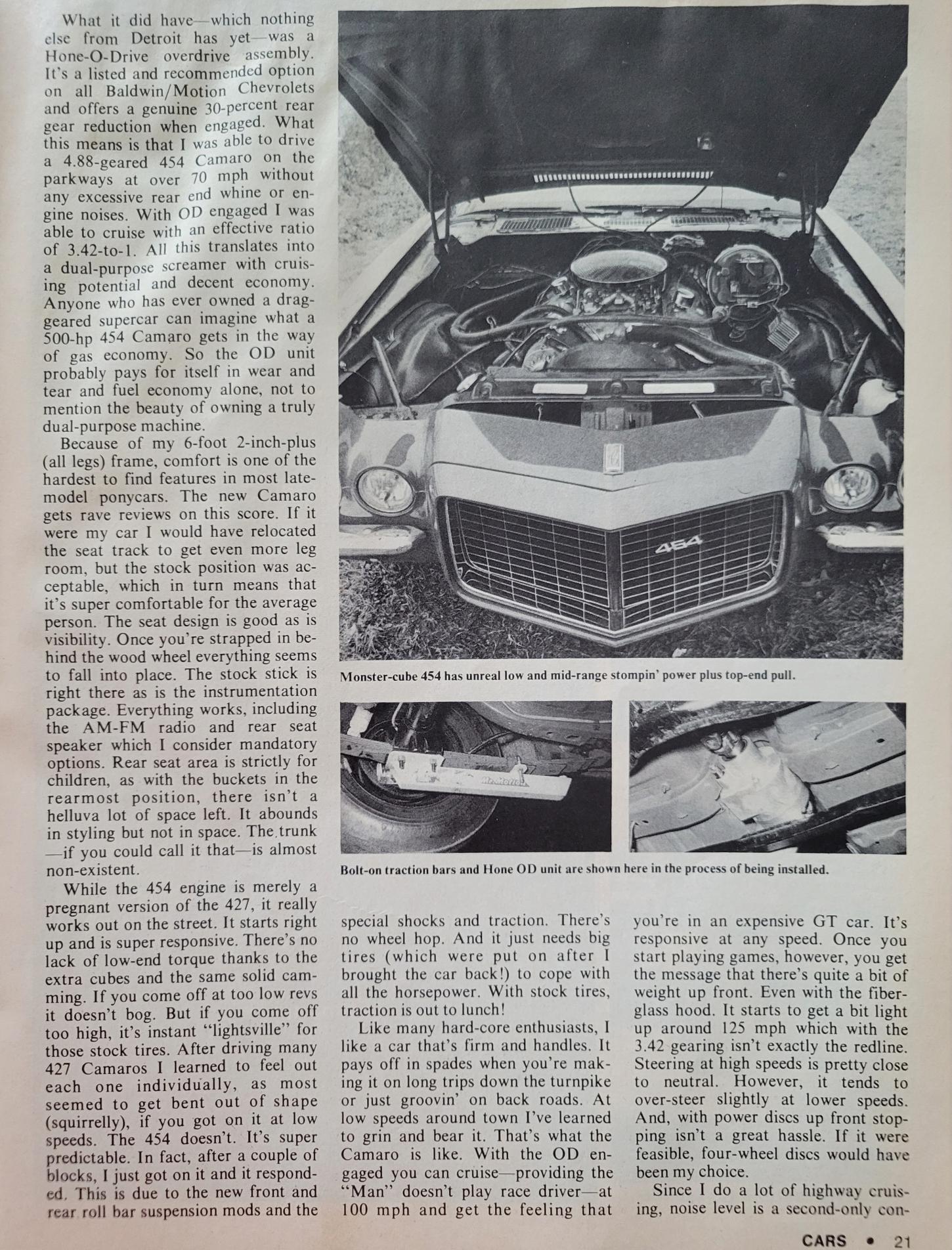 1970 Baldwin Motion Phase III SS 454 Camaro Road Test, Hi Performance Cars September 1970