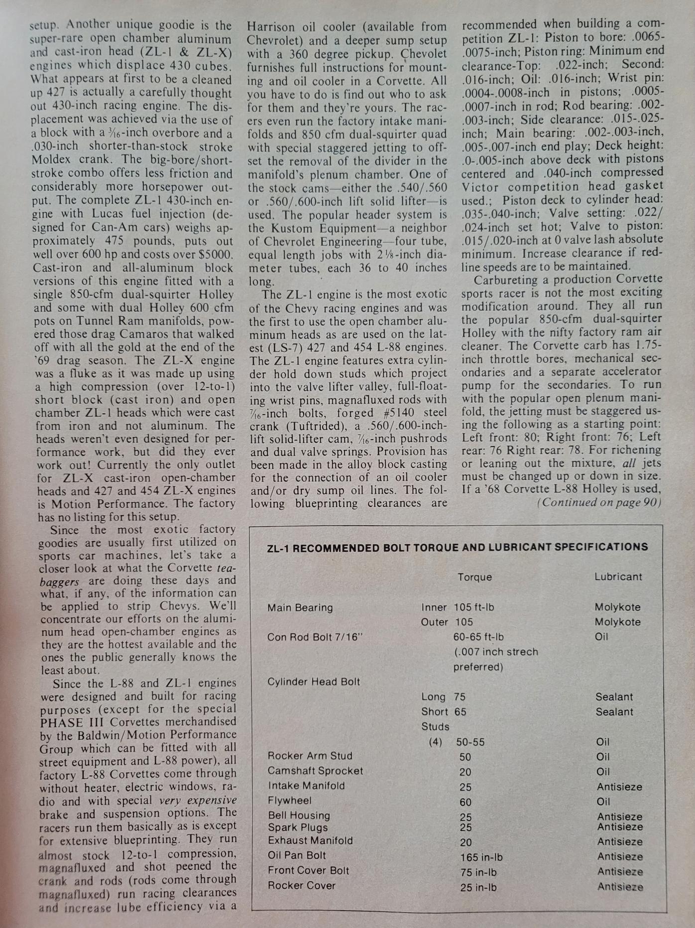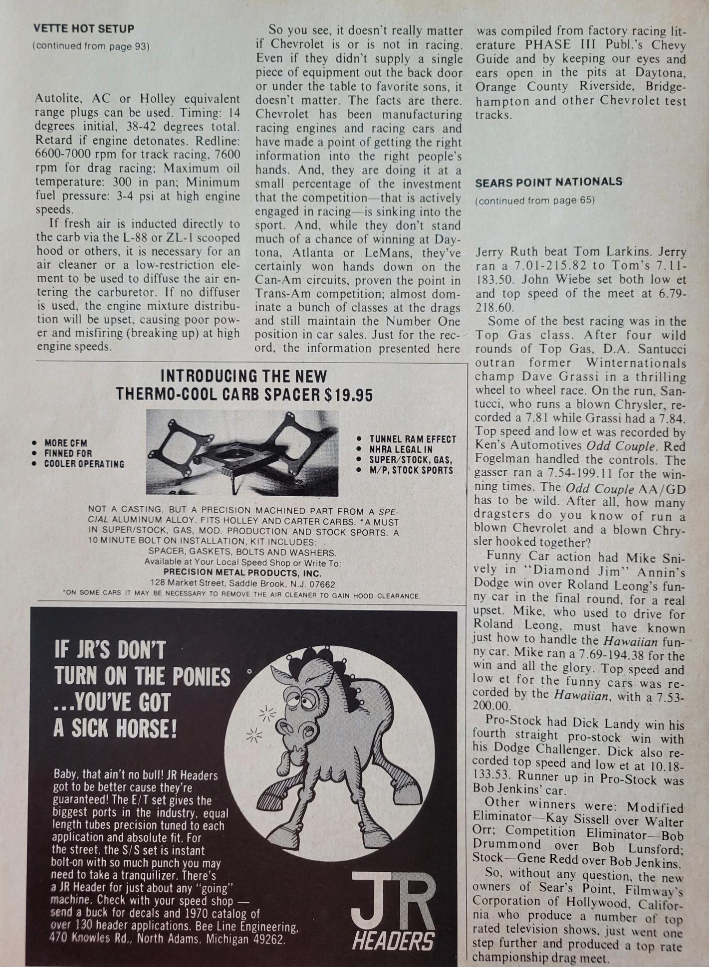 Lighting The Vette's Fire, Hi Performance Cars August 1970