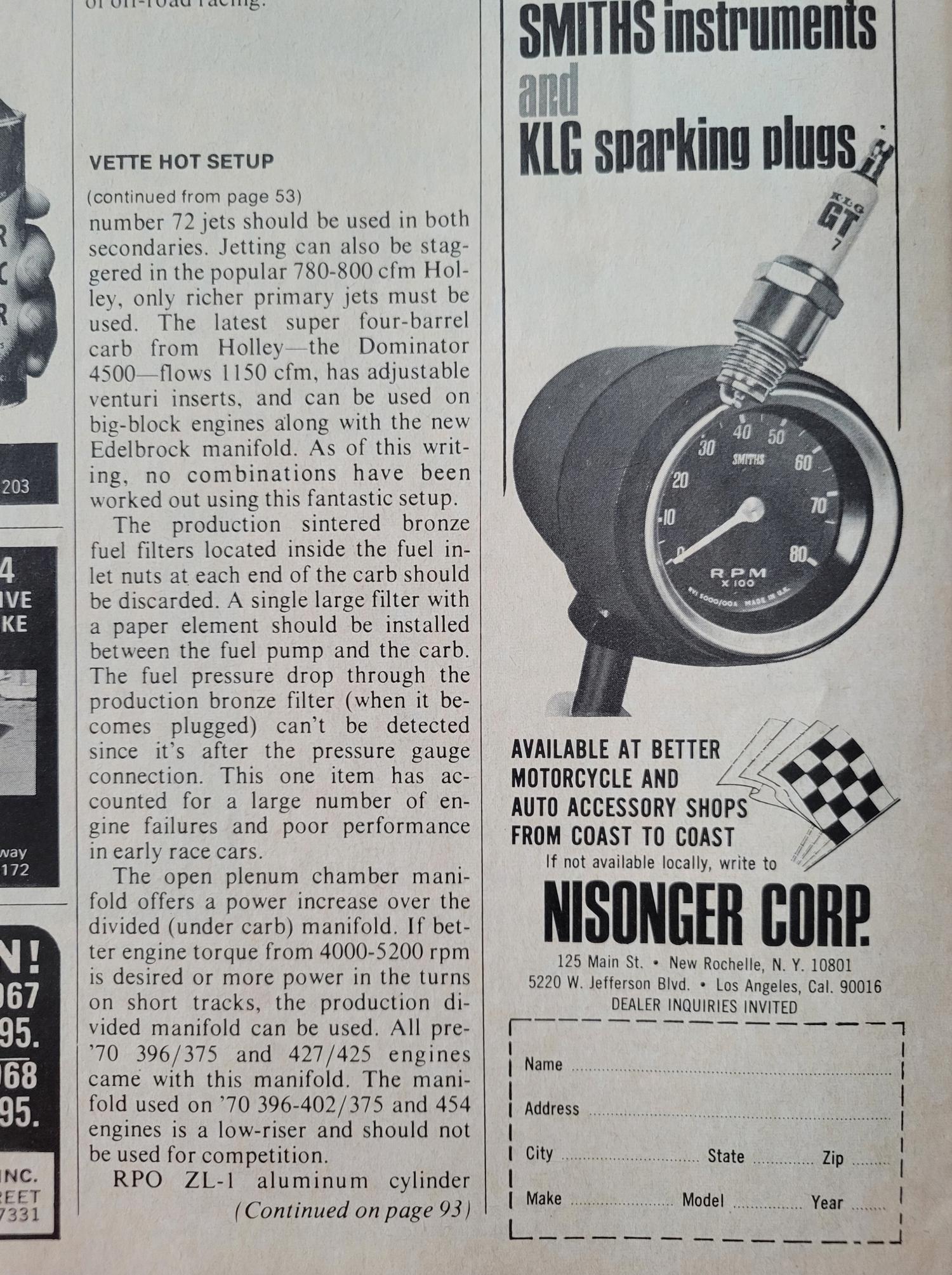 Fuel Feeding The 454 Chevy, Hi Performance Cars September 1970