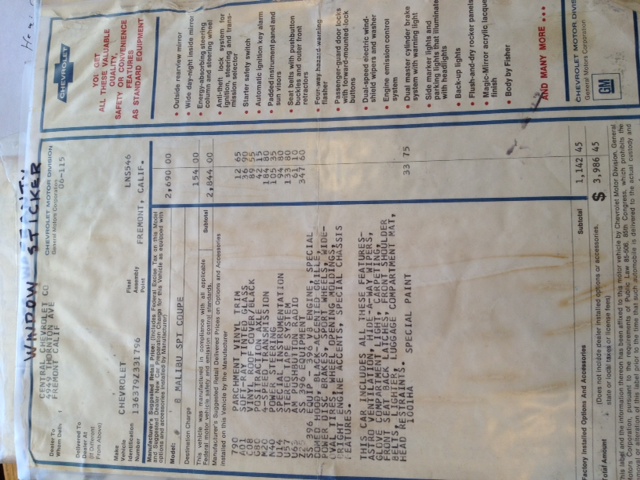 About 100K on it..Now here is a ton of paperwork. How about 5 build sheets delivered to the buyer before his car was even built ? Anybody ever hear of that happening before ? I'm talking myself out of selling it.