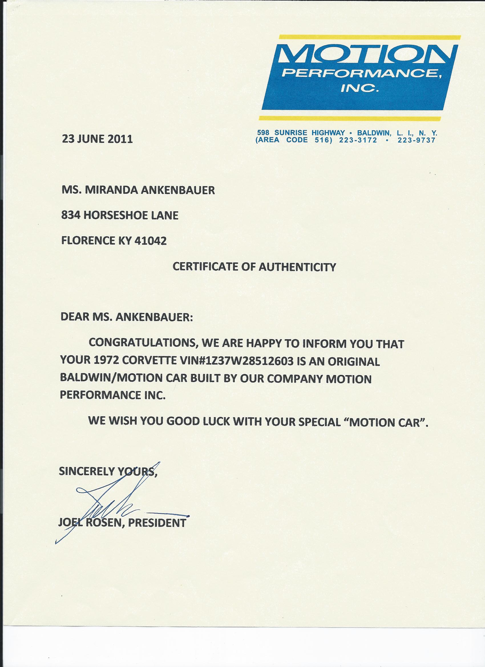 The above forum pretty much sums up the car. I'll send some docs to Rick N. to see if he will post. Basically a unmolested survivor minus a laquer exterior repaint in 1975 due to parapalegic owner chipping paint with his wheelchair. Great history on this car. I have the original tires / calipers / master cylinder that were on car. No drivetrain components were rebuilt ever and this thing runs like a raped ape. I have 16 pages of Motion related work orders / question-answer letters between original owner and Motion. They are the ORIGINALS, not copies, from Joel Rosen. Dave