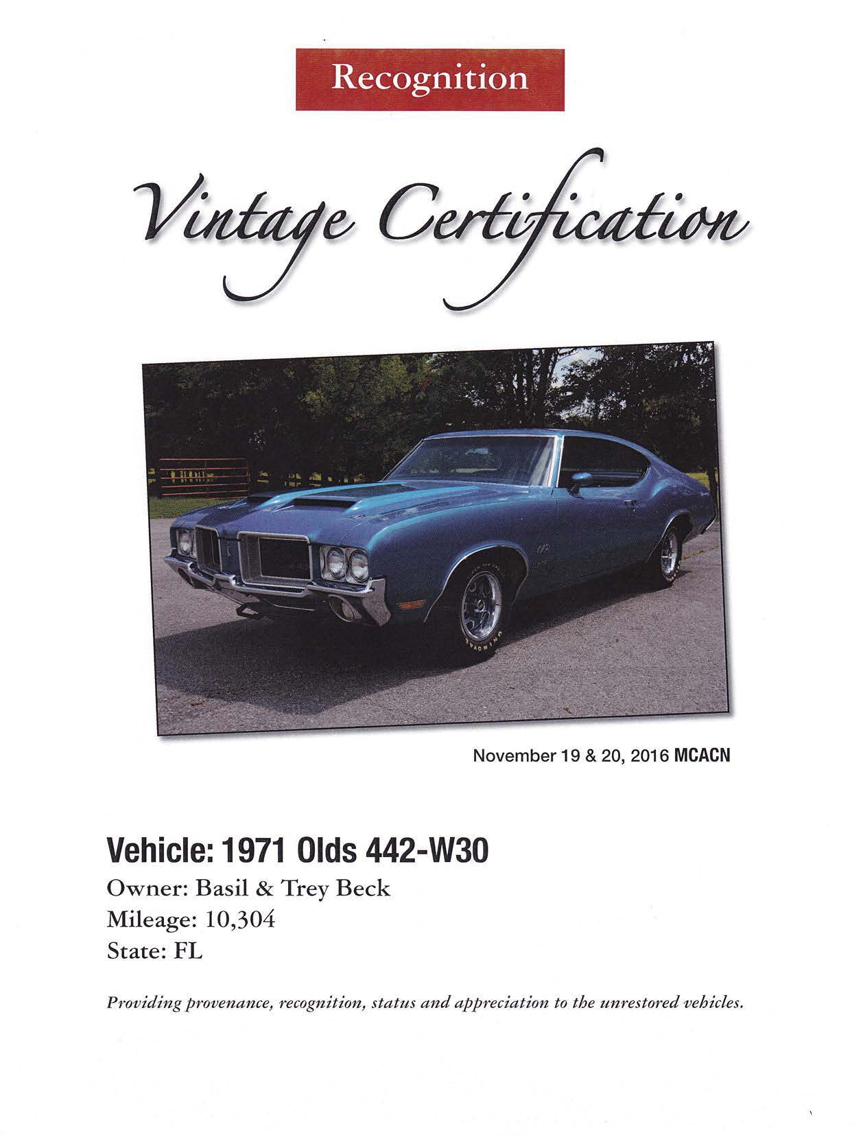 Steve Shauger The Supercar Registry www.yenko.net Vintage Certification™ , Providing Recognition to Unrestored Muscle Cars. Website: www.vintagecertification.com |