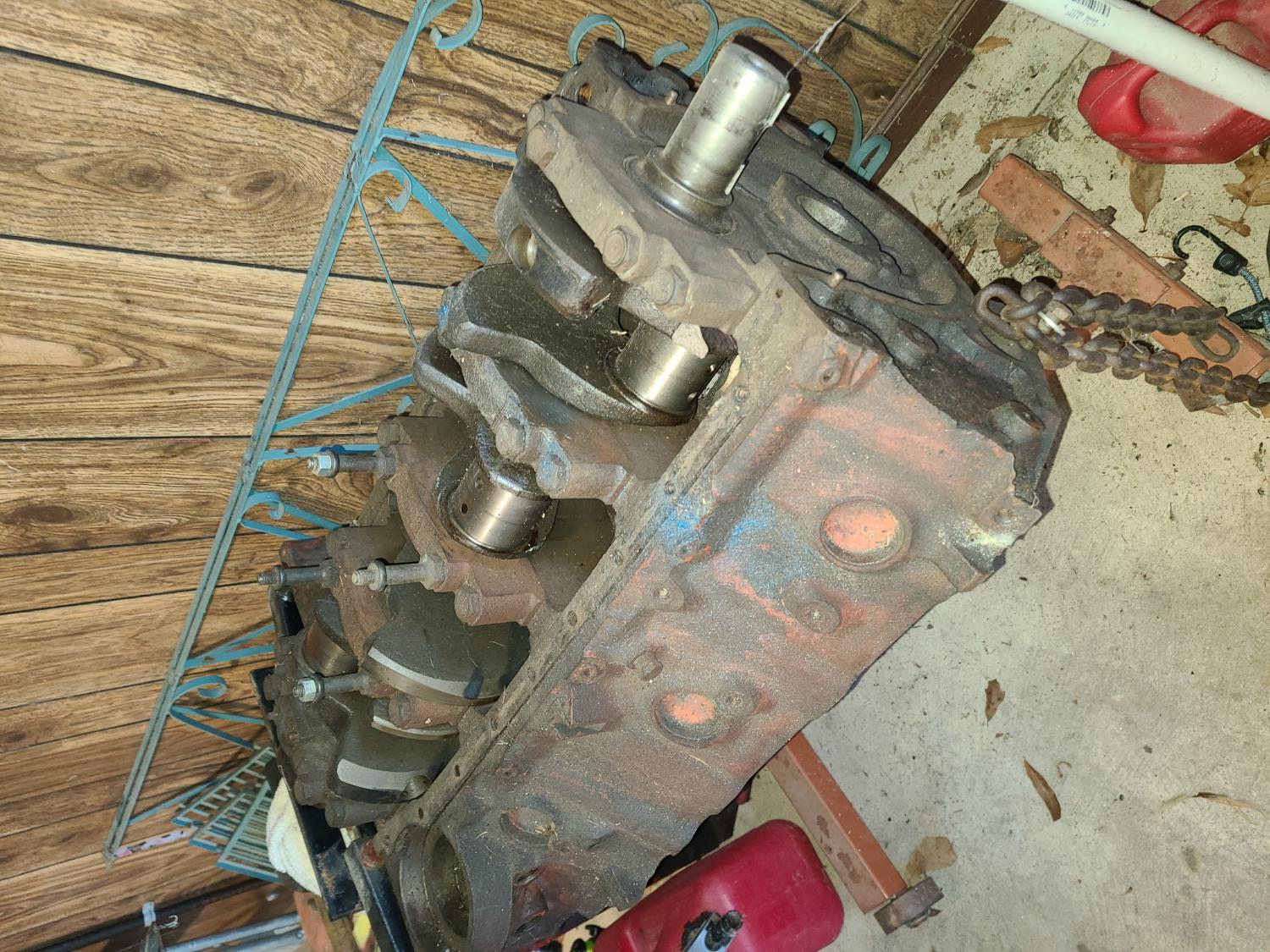 I was going through some old parts that I'm thinking about getting rid of and uncovered a block I've had for about 20 some odd years that I picked up to build one day and never did. It's block casting 3963512 it's an original 4 bolt main block with the original forged crank in it. The stamping indicates it as a replacement/warranty engine with CE958724 and it's never been decked. I figure a Corvette guy or a Chevelle guy might need this thing more than me.