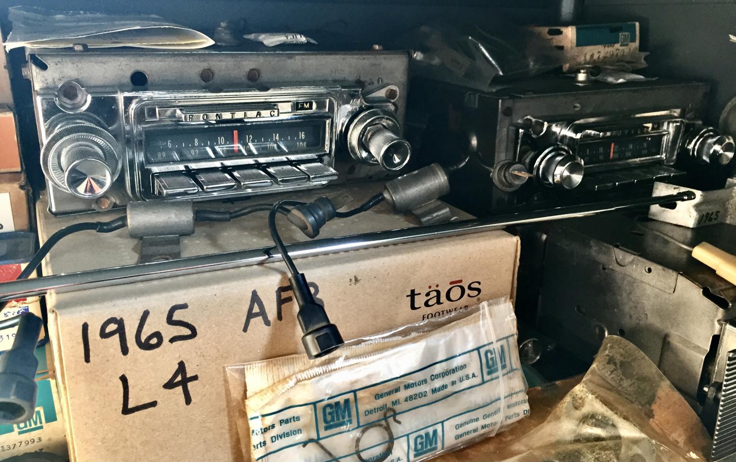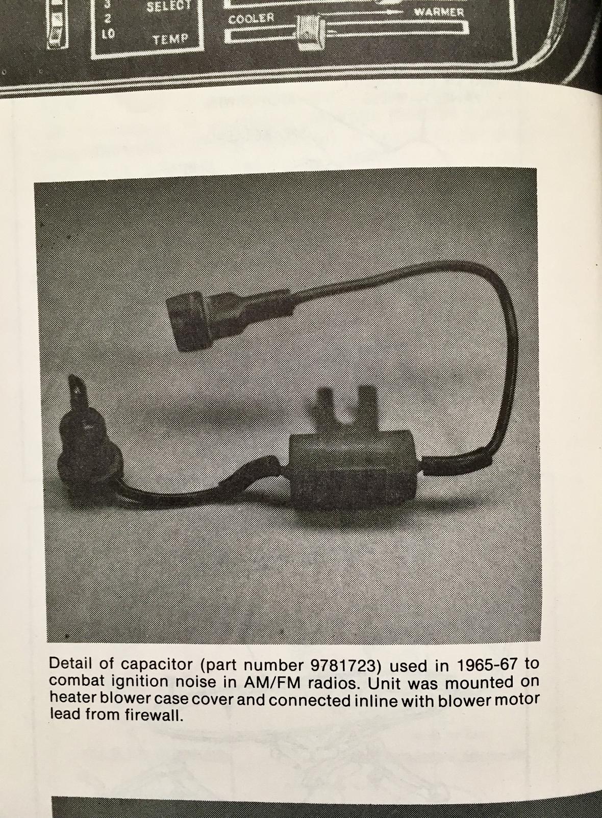Looks like you have an AM-FM radio with a capacitor under the hood. The 65-67 GTO fitted with this radio required this little in line unit to combat ignition noise.