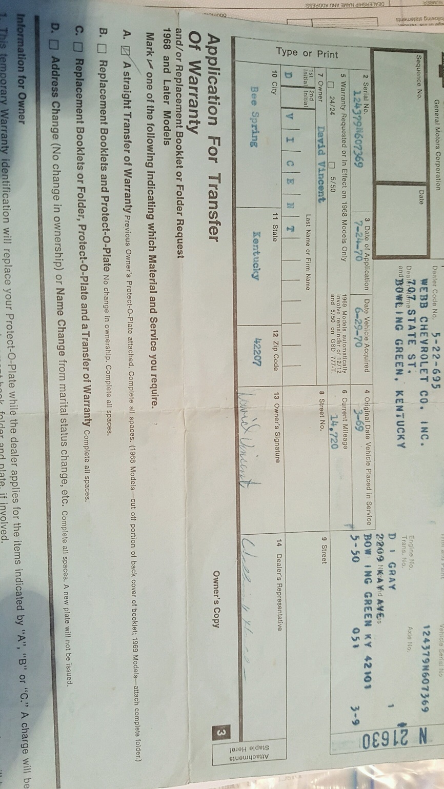 Real solid lifter 4 spped L78 New pics, documentation info and ncrs paper on the way. Rather than blow the car out with bad photos and lack of info I will list this car on ebay with tons of pics, paperwork, history and tons of information. 79.000.00 I will include a set of like nos dated l89 heads in the trunk for those considering L89 clones on the market for 1/2 market price . great car!