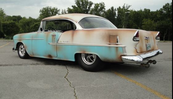 Straight-axle '55 in the BG was first blue/metallic silver "327" (everything was in quotes then) on Americans, then red/white on rallye's, as pictured - 454 LS-6 - surprised a few!