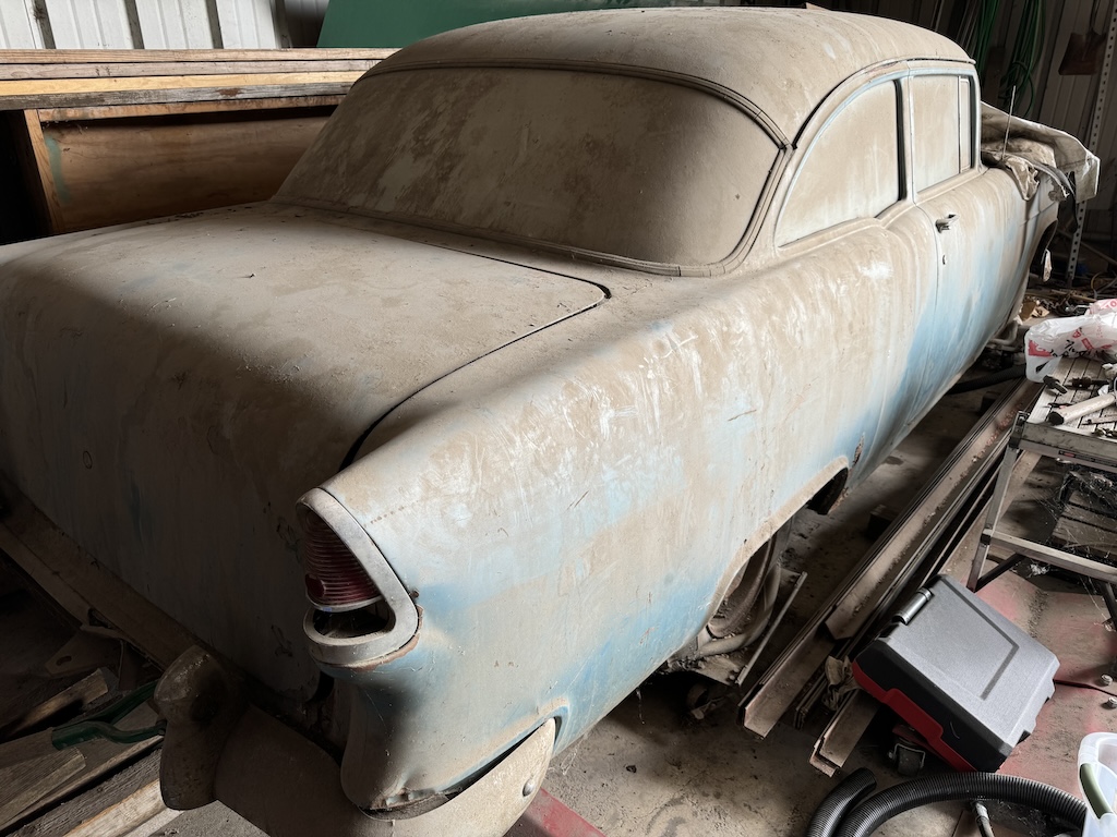 My '55. Not sure how it's going to turn out, but one thing for sure, it's going to have a clutch pedal and a 4 speed in it. I've got a 327 built for it for now, and I'm building a 12 bolt that I narrowed to fit. It's probably going to have a big block some day.
