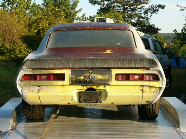 just picked up this car i have know about it all my life and grew up looking at it all the time turns out its a z28 early car built sept 2nd week real daytona yellow /black deluxe int, console,rear antenna,interior decor pkg,chambered exhaust were the options...notable signs are x7 on rear shelf deck,torched out oval 4 spd hole,12 bolt bu 373 posi,single 3/8 fuel sender,correct fast ratio manuel box and pittman arm ...car has all new rear leafs,shocks,bushings,etc has all new front subframe bushings, balljoints, springs, swaybar, master,booster etc all hotchkins stuff,bu 373 12 bolt completely rebuilt,4 wheel disc brake setup just rotors installed the rest is in the box car is rolling,all new sheetmetal from fenders forward including deck lid,new weld wheels and tires in front,new weatherstrip kit,new stainless brake and fuel line kits,lots of stuff...also has orig 403 bellhousing,cb radiator,,driveshaft,old orig valve covers,etc.the trunk floor is super clean as are the rear rails and shock mounts the driver side floors are patch free and someone installed a pan on the pass side.Has new quarters and outer wheelhouses installed but need finished.A great z prog at a great deal...15k obo trades?