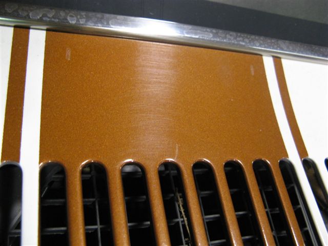 Now this is really cool. If you look closely you will see marks on the paint for what we assume is laying out the stencils for the stripes. This car has never been waxed and if it had they would have been gone.