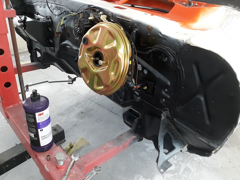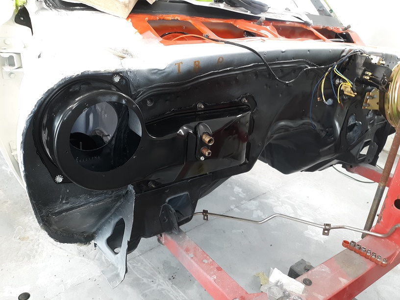 Have since rotated the top cylinders 180 degrees - fittings were pointed wrong. Pinchweld sealer tape also on. dash mat (firewall pad) and replaced all the pedal bushings and fitted the pedal box into place. More done, left the camera at the shop so more updates in the next few days.