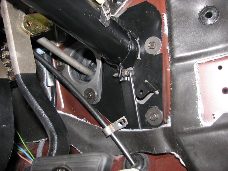 The Quietride firewall pad comes with the pad that goes around the steering column just like the original though it does need to be cut out for the steering column, clutch rod and brake rod. The speedometer cable clip was on the original cable but not attached to the firewall plate. When I tried to attach it, it would pull the cable up tight against the clutch rod so I left it off just like it was originally. Oddly enough the accelerator pedal attachment bolts were zinc as I usually always find them black oxide on 70 Chevelles. Regardless we restored them as found. The accelerator pedal rod and retainer were both a dark grey phosphate and were restored as such.
