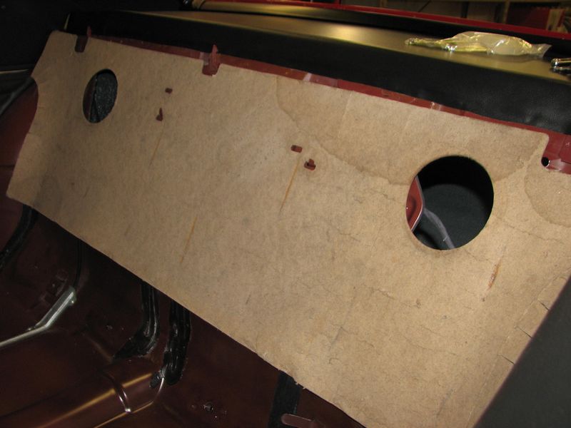 Poking holes in a stretched headliner is oh so nerve racking! Nice to see the oem jute on the bottomside of the package tray also. |