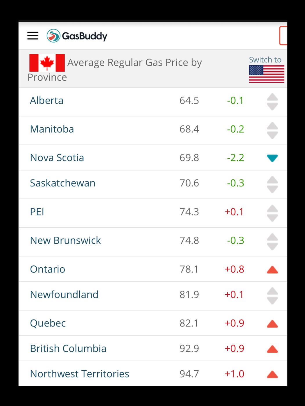 Here's Average prices for Regular Gas across North America as of a few minutes ago. Canadian prices are per Litre/Canadian $ and US pricing per US Gallon/US funds. ![]() ~ Pete .