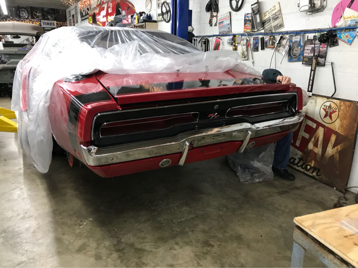 Original bumper plated and installed. Very pleased with the figment and really how things are coming along. I will be putting the dash in next week. Trunk is all finished. Except the decals.