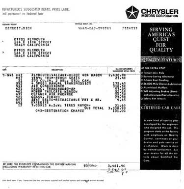 RARE PLYMOUTH 1966 VALIANT 200 WAGON - ONE OWNER until I purchased a few years back. ORIGINAL PAINT CALifornia car purchased new in Stockton, CA. I have the ORIGINAL Window Sticker, registration cards from new, all service records to include the warranty card. The under belly of this car is outstanding, the leaf springs still show faded chalk markings. The rims still have the original paint with the original primer on the backside. NOW for the good stuff: Engine is a 273 V-8 with 2 barrel; FACTORY 4-Speed; FACTORY AC. Based on Goviers book: VH45 model has a production of 866 wagons with the D code 273 engine. ONLY 13 made with 4-Speed transmissions. This is probably the ONLY 1 made with FACTORY AC, Chrysler did not recommend ordering AC with 4-Speed trans. This maybe the ONLY VH45 wagon that exists. Thank you
