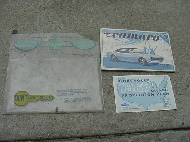 I have just listed a first edition 67 Camaro owners manual and protecto plate on ebay for $9.99 with no reserve. This is a blank filled out protecto plate here is link: