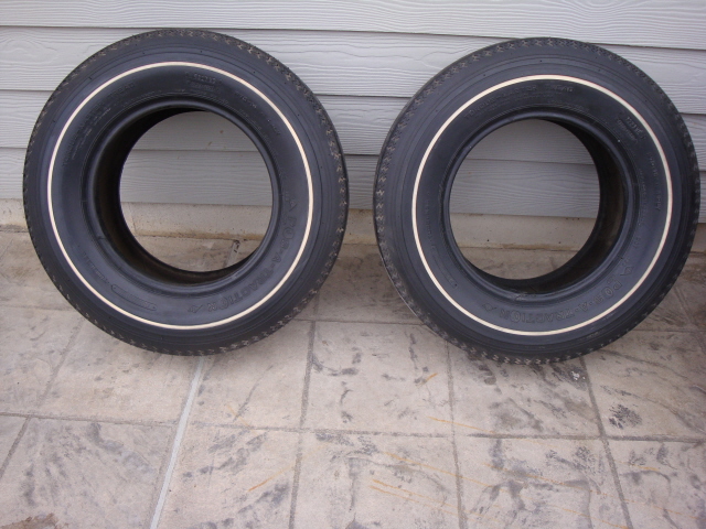 A pair of extremelly nice Pos-A-Traction brand TorueMaster Tread F70X14 original tires. Manufactured by Inglewood Tire , they are red line on one side and thin whitewall on reverse side. Tread still has nubs on them (see photo) . Hard to find tires in this condition. Perfect for a Day 2 car! $600.00 plus actual shipping charge.