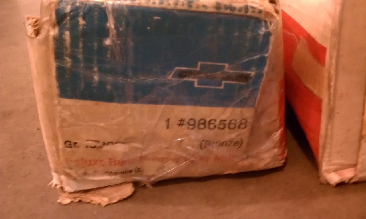 NOS in boxes. Factory Bronze (dark red) Matching set in great shape, fronts are coated in mineral oil of some sort which is why they're shinier. All are excellent shape and would look great in a Bronze interior 66 Chevelle SS396 or should work in a Bronze interior Impala SS or Caprice. $175 plus shipping from 98055/Seattle area.