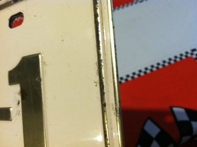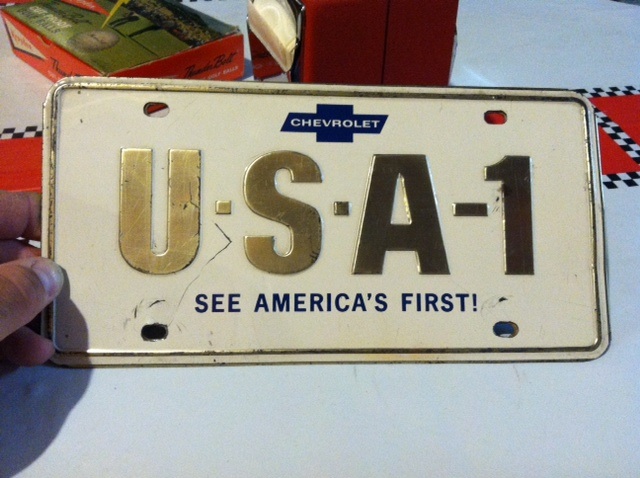 Since the old search links are no longer able for viewing, I'd like opinions of where and when this plate was first used. It appears to have chrome like gold USA 1 letters and is thin metal wrapped over a fiber backing.