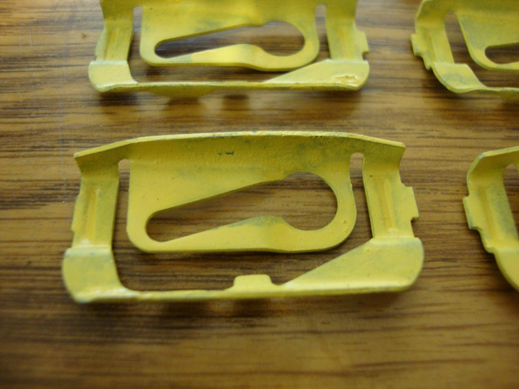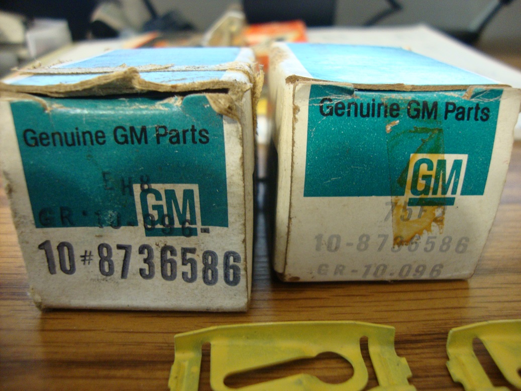Two sets of ten NOS GM front windshield and rear window trim clips. Used on many 66-72 GM vehicles. One set of ten are yellow, the other set of ten are like a brown mustard color. All 20 clips are the same exact clip. If I remember correctly, the reproduction clips are too large and the trim won't lay flat on the car. The trim will stick up with reproduction clips. $75 for both boxes shipped.