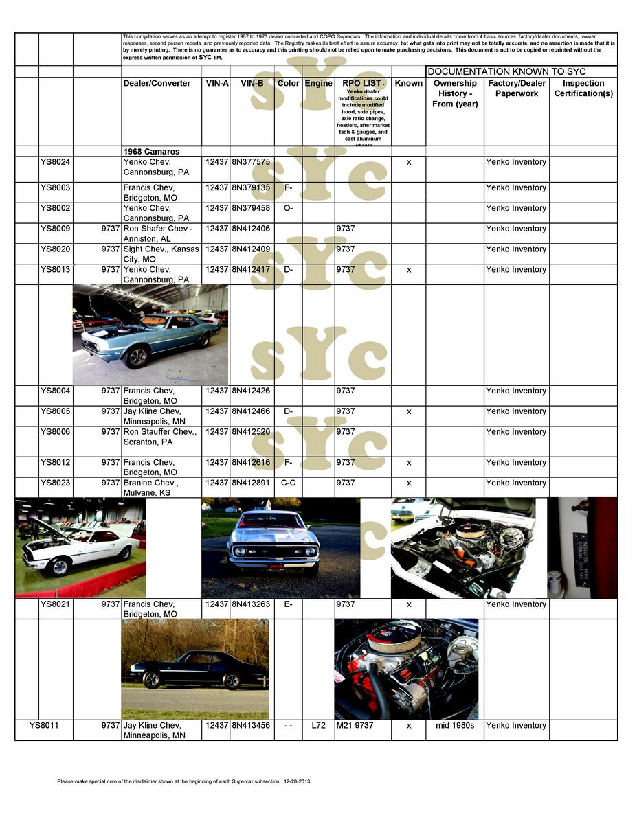 Notice how there's no 44 VIN's? It goes from 43 to 45. Mine is a 44 VIN and have the NCRS showing Yenko as the delivering dealer. It also has a 427 and all numbers, casting, cowl tag and completion date of motor are within 5 weeks of one another.