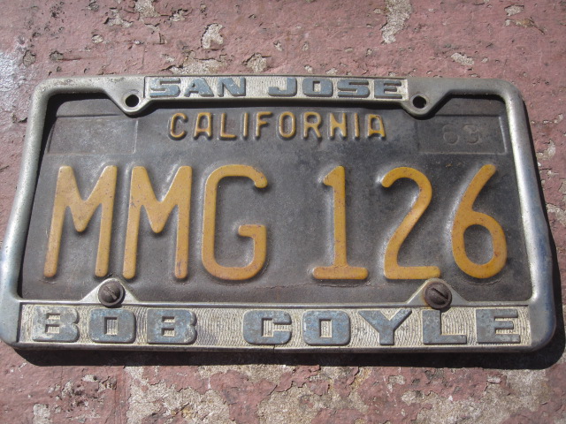 I have a Bob Coyle a Chevrolet dealer out of San Jose license plate frame with a black 63 CA. plate. Any interest or idea of value. Its pretty rough make a good wall hanger if your car is from there. Larry