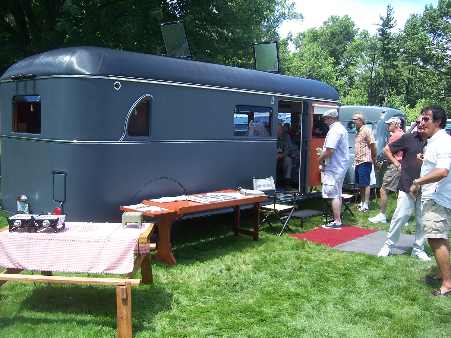 The "Eyes on Design" event has had a few displays on vintage camp trailers (aka the "Tin Can Tourists" and there are usually a couple specialty built rigs, including some from Pierce Arrow and Duesenberg. The rig pictured below is particularly notable because it uses aero frame technology and is covered with a "fabric" like naugahyde.It's not out of the question, since the 5th wheel configuration was invented by Detroit blacksmith August Fruehauf in the early 1900s, in true Michigander fashion, so that he could safely tow his boats "up north".