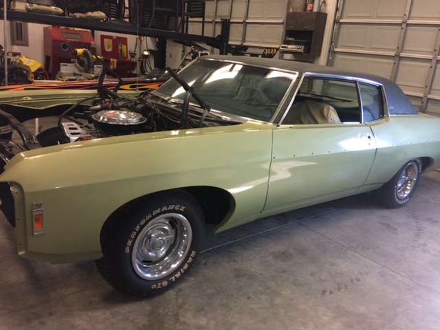 This is a friend’s car. Here is what he says: 1969 Caprice 350,th350, 12 bolt,new top, paint is fairy new, fresh number matching engine (I clarified, it IS Born with engine ), 300hp, all new front suspension already installed, fresh chrome on bumpers, 83k miles, 3 way green, Corvette wheels and valve, new dual exhaust, new carpet, ac, ps, pb, tilt steering, have almost everything to finish. About 90% finished. Could be a money maker or fun cruiser. Asking $9k I am sure my buddy can provide more pictures