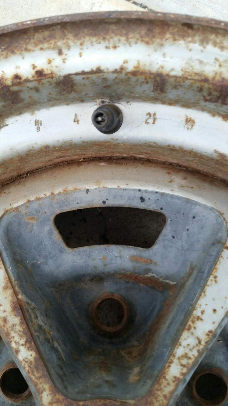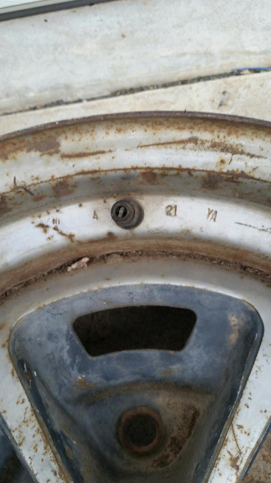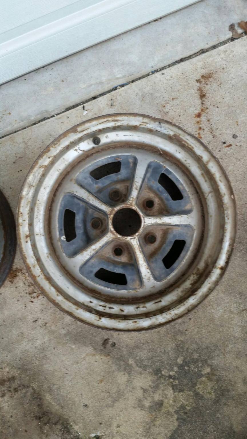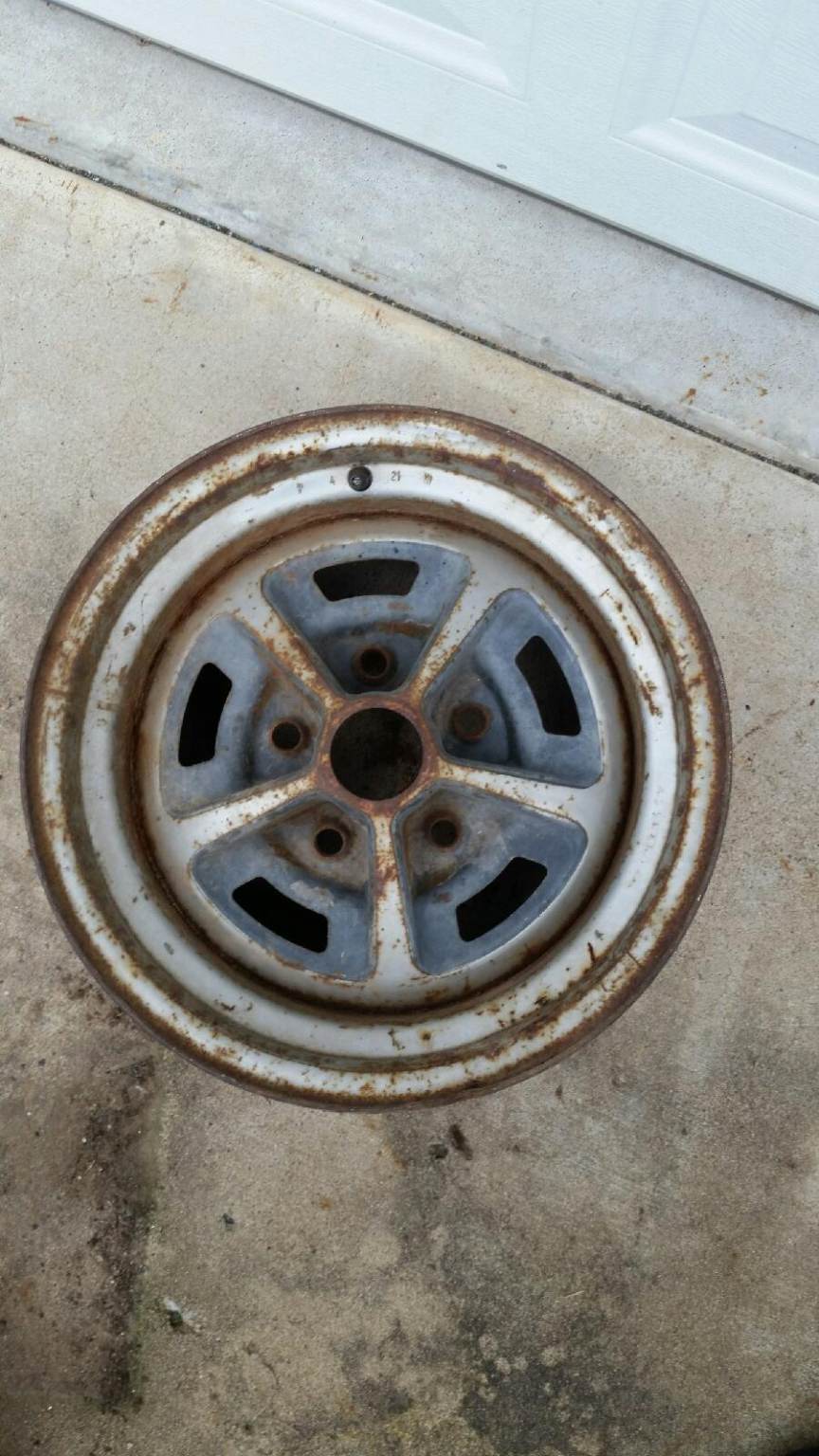 I have a pair of these both dated 4 21 9. they are in good original condition. not repainted. bolt holes look good. they roll straight. both wheels have a small spot that looks like a tire machine may have barely lifted the edge in a small spot or possibly dropped. (look close in the pictures). I was going to tap them out but decided to leave them for you to see. 250.00 for the pair plus shipping.