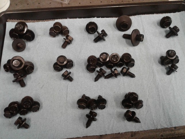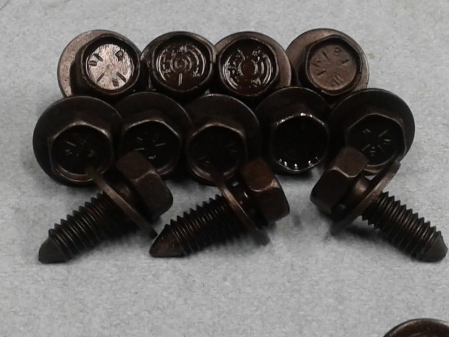 1. Hood hinge to hood bolts F (4) 9419301 2. hood hinge to fender bolts GL (4) 3. Fender to upper cowl bolts F (2) 9419301 4. Fender to firewall bolts F (2) 3839741 5. Fender to door jamb bolts F (2) 9419301 6. Fender to lower Cowl bolts F (4) 9419301 7. Fender to radiator support bolts GL (4) 3846201 8. Wheel well to fender bolts C (12) 3846202 9. Wheel well to inner fender bolts LF (4) 3846201 10. Wheel well to radiator support bolts LF (6) 3846201 11. Hood catch and latch bolts RBW (8) 3846202 $310 shipped to the lower 48 ppff |