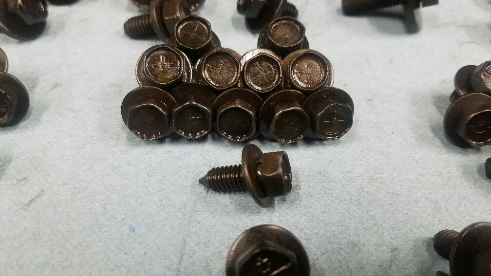 1. Hood hinge to hood bolts F (4) 9419301 2. hood hinge to fender bolts C (4) 3. Fender to upper cowl bolts F (2) 9419301 4. Fender to firewall bolts Anchor over T (2) 3839741 5. Fender to door jamb bolts F (2) 9419301 6. Fender to lower Cowl bolts F (4) 9419301 7. Fender to radiator support bolts RBW (4) 3846201 8. Wheel well to fender bolts E (12) 3846202 9. Wheel well to inner fender bolts E (4) 3846201 10. Wheel well to radiator support bolts E (6) 3846201 11. Hood catch and latch bolts Anchor over T (8) 3846202 $310 shipped to the lower 48 ppff |