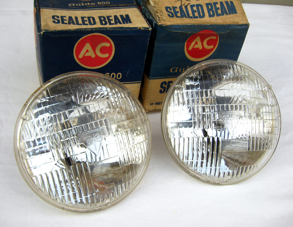 (2) NOS GM T-3 Headlight bulbs. Made by GM about 50 years ago. These bulbs are the 7" inch and have the T-3 in the center with vertical lines.