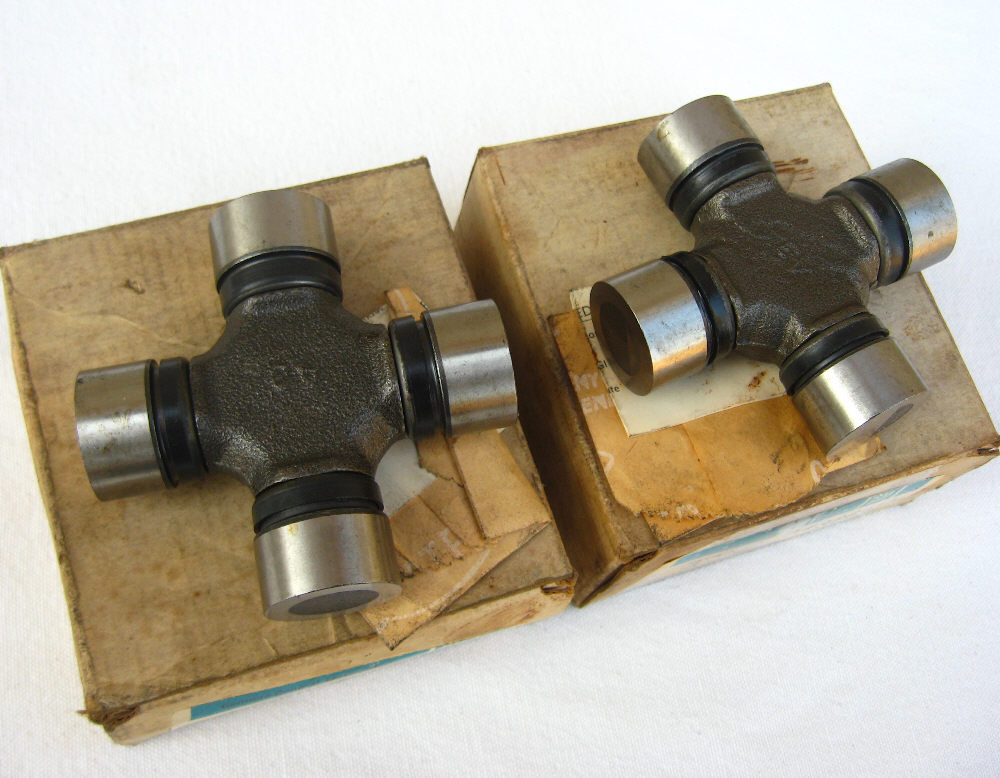 (2) NOS GM drive shaft U-joints. Hard to come by that are without the zirt fitting hole. These fit both front or rear. They are made by Spicer for GM and have the Spicer embossed on the joint as well as the caps.