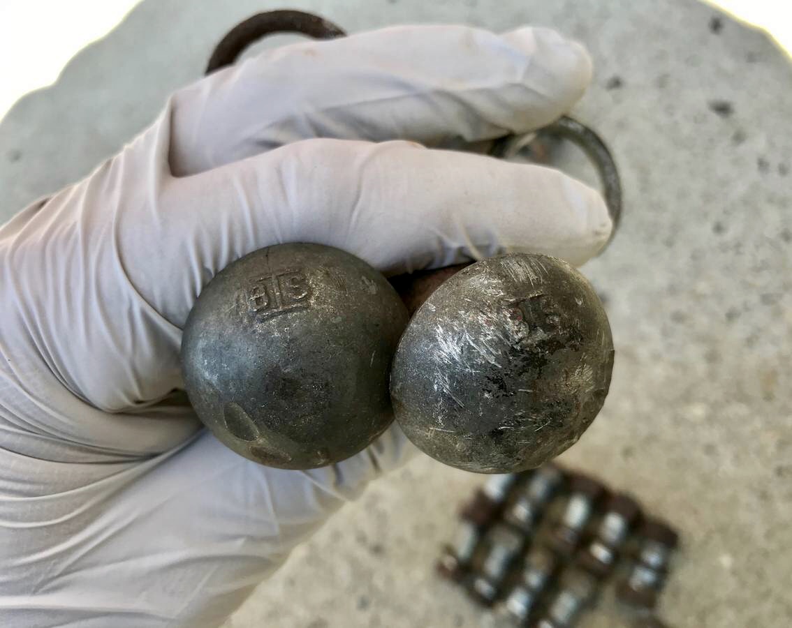 -One is still in the original paint (has surface rust) and comes with a safety chain, has pins: (SOLD)