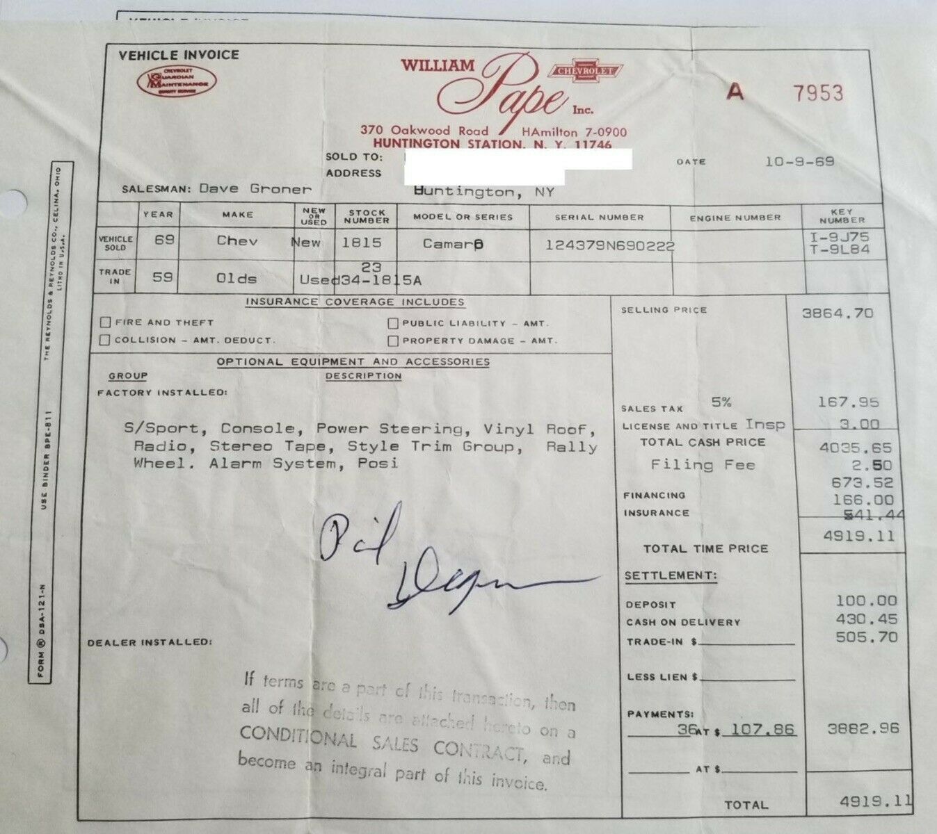Interesting docs. It is me, or is the price listed on that dealer invoice extraordinarily high for the options this car has? Link to 1969 Camaro SS auction ![]() ![]() ![]() ![]() ![]() 124379N690222 |