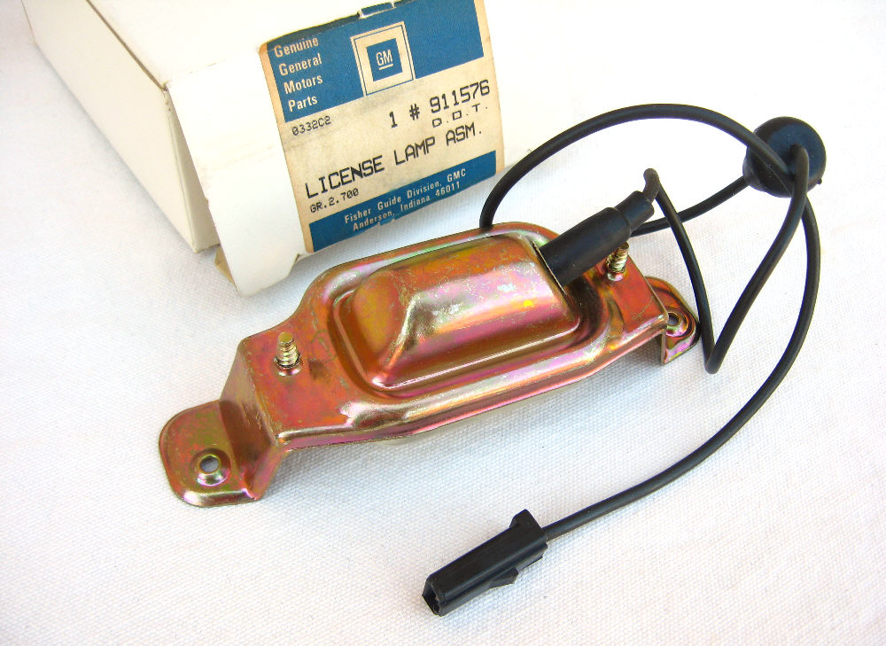 NOS GM license plate lamp assembly. The lead wire is black. Excellent NOS condition. Fits many applications(See below).