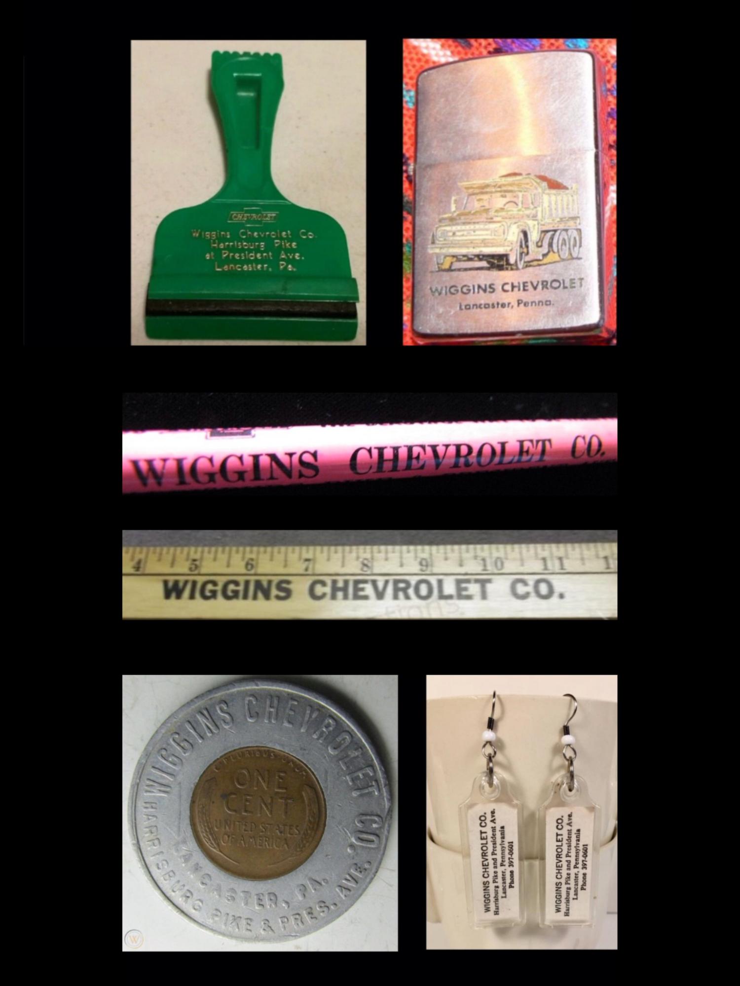 Looks like a few Wiggins Chevrolet Lancaster delivered cars exist including a '63 'Vette Coupe also '67 SS396 Chevelle. If you haven't seen them yet, there's a Wiggins' Ice Scraper currently on eBoy also a set of earrings that appear to be Wiggins Keychains on Etsy @ these links also as pics below. ![]() ~ Pete Wiggin's Chevrolet Ice Scraper on eBay... .https://www.ebay.com/itm/Vintage-Wig...-/293319247463 Wiggins' Chev Earrings on Etsy... https://www.etsy.com/ca/listing/4694...sr_gallery-1-1 .