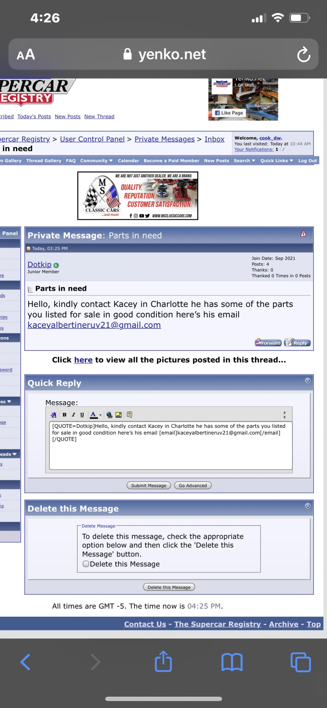 If you purchase a part from anyone on this site or others even from people you know. make sure the email they give for PayPal matches the person....and stop using pal f and f. unless you are sure of who you are sending money to. just an fyi