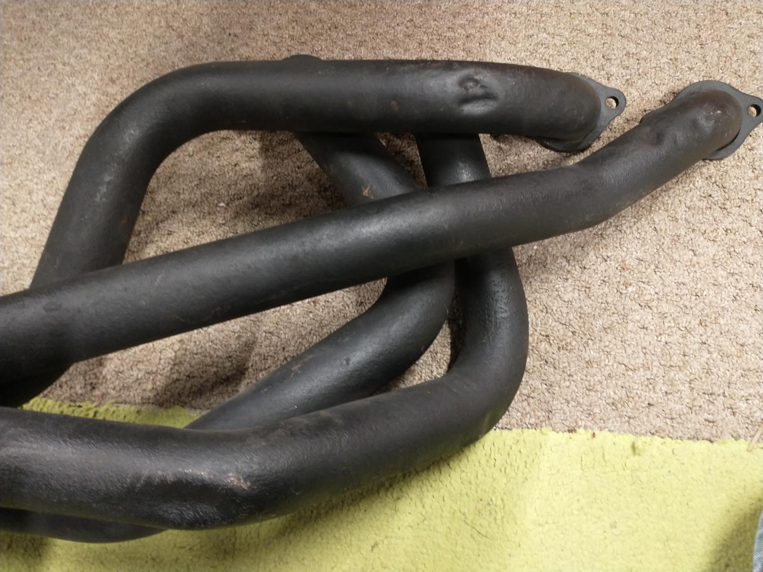 Pitted, sprayed black years ago.....dinged, dents. Survivor, Driver Quality. No rust holes or patches. Decent condition overall. Not quite as bad as my description, but not far off. $250 + shipping. Prefer pick up or something ..... Pics soon....they're behind Furnace. Have SBC set as well....will need work. 1 3/4 spaghetti tubes , long collectors , square flange. $220 + shipping. Damn,, these are great patterns ..anyone enthusiastic too build sets ???