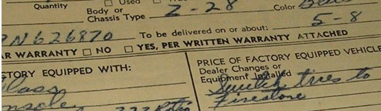 Got a low mile car that was Steve Shauger's years ago. 396-350 hp, 4 speed. I think it has about 24K miles on it. Orig. unrestored car. Built first two weeks of Camaro production. Odd part is the guy ordered it with Rally Wheels but it showed up with a goofy combo of XT wheels with a rally wheel center screwed to a poverty cap.