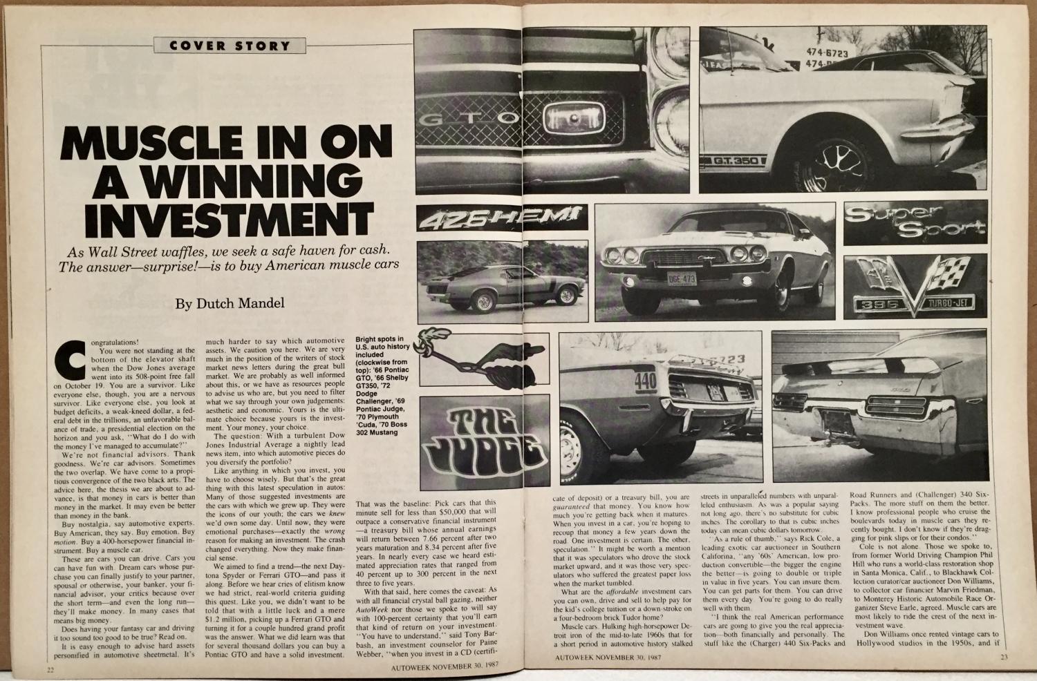 With the sky high prices of collector cars of recent, this magazine offered up what some people elect to invest in. Life’s a gamble and so are our investments, but owning a true collectible automobile to look at, work on and drive is priceless. JMO, Chris