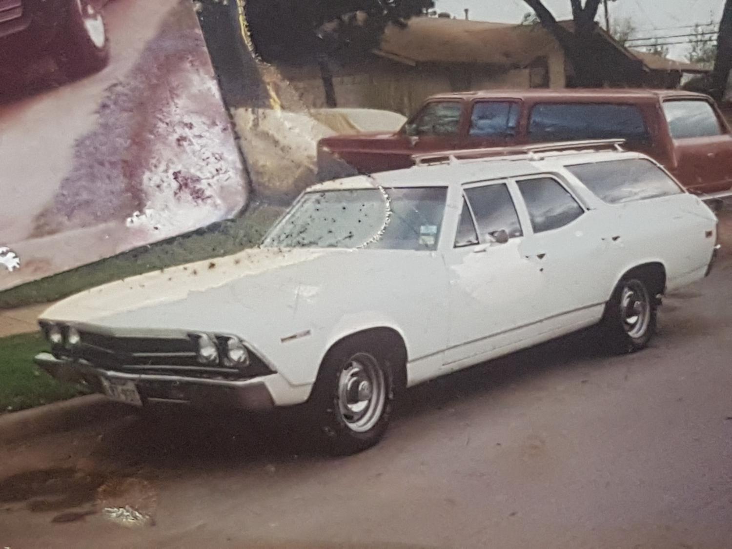 I bought this wagon from the original owner's son in 1990 and drove it home from Palmdale CA, added a quart of oil and had a blown tire in Montrose CO. Having spent its life in a rural high desert environment it was loaded with sand everywhere and had a tough as nails film of dirty scum. That film acted to protect some nice finishes once removed. What it doesn't have is any rust, anywhere, beyond minor surface rust. As you can see the paint is chalked out and the woodgrain is toast. A top trim level Concours wagon, the first year woodgrain was applied to a Chevelle, options are L30 327/275 with Powerglide and CA smog. PS, PB, A/C, power tailgate window, AM/FM radio and front bumper guards. What it doesn't have, and seems odd for top trim level, is roof rack and no option dog dish caps. I will post more on bringing this wagon back to life and making it the best it can be. - Bill W |