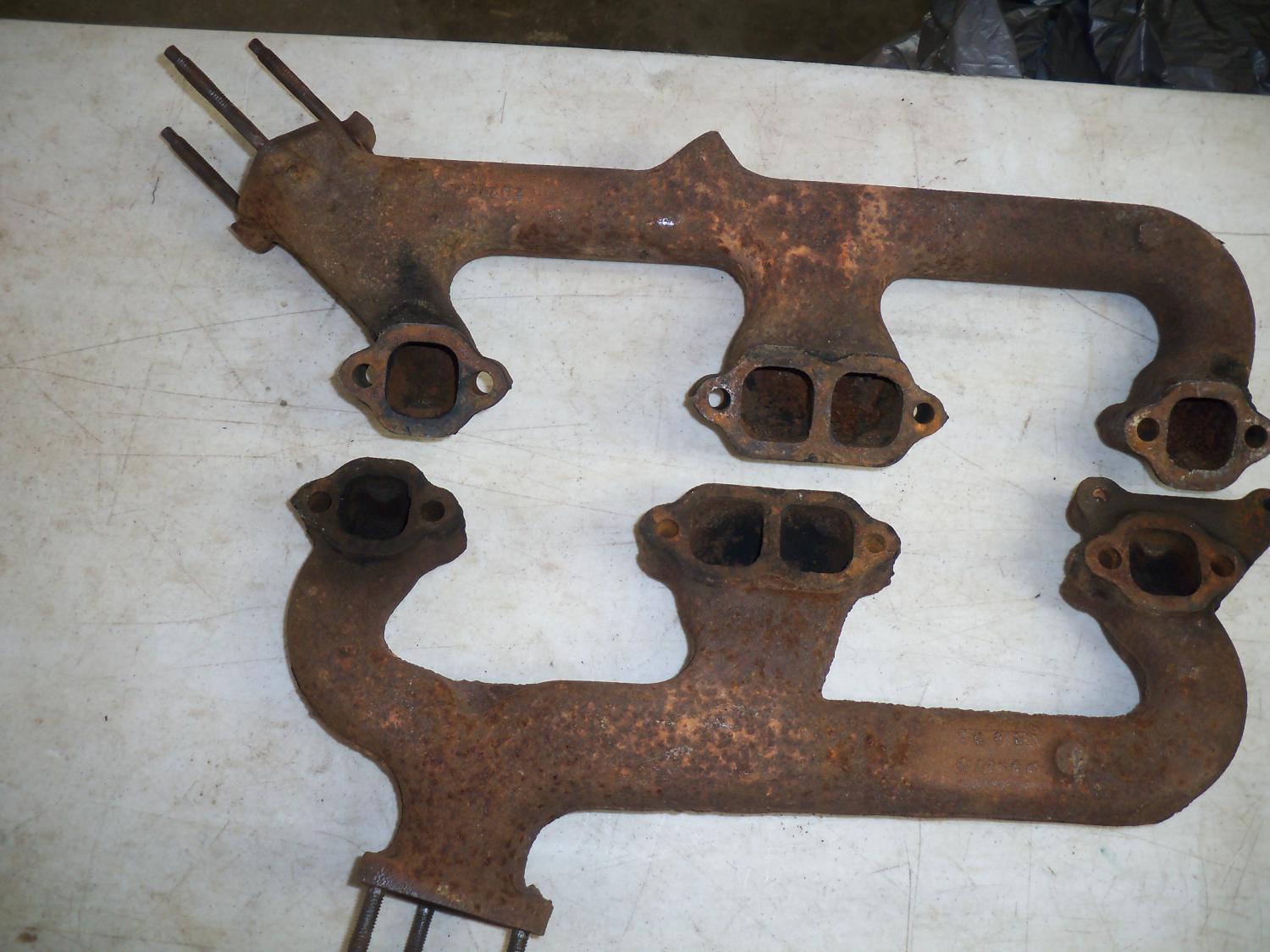 Up for sale is a pair of 67-68 Chevelle Camaro SB exhaust manifolds. Comes as pictured with the flange rings, heat riser and OEM nuts. The heat riser flap is welded open. Part numbers and dates are not readable. $125 plus shipping