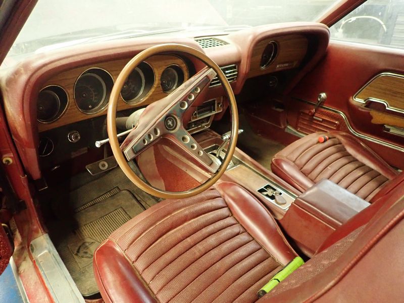 In a major deviation from the norm, we have taken on a 69 Mustang Mach I 428 CJ all the way from Tucson, AZ. The owner has been waiting over a year to get a slot in the shop and we finally made room. As much as I would love to restore this car (virtually everything on it is as born with including the exhaust) we are only rebuilding the entire drivetrain and brakes, cleaning the interior, doing some minor ding repair and a total buffing. The owner just wants to drive his old car again as it has been parked since the mid 70's and has virtually NO interest in muscle cars! NO, he will NOT sell the car as he inherited it from his father! One very cool ride though. I hope to document every marking on the car. Looked for a buildsheet but so far nothing. San Jose cars are not known for having them like the other plants. A/C car, Ram Air, positraction, fold down rear seat, but missing virtually all of the engine bolts and much of the peripherals such as, distributor, starter, etc and the owner has no idea where they are. Those will not be easy items to find.