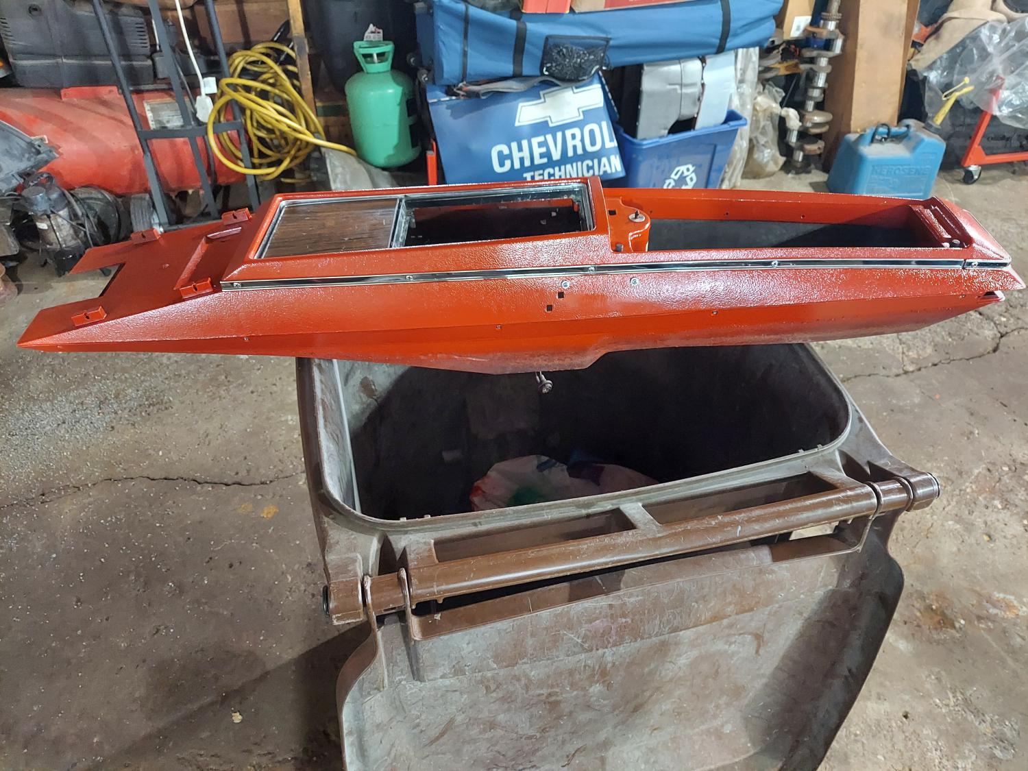 Was originally red and just repainted red. No repairs were made. There is a tiny stress crack up front 1/16" long. I don't have any other parts for it. $450.00. Can ship for $40.00 in the continental USA by FedEx only. No usps p.o box shipping at all.
