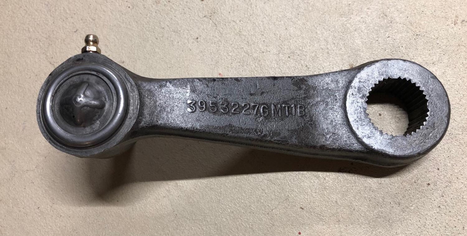 Here is a factory original 39535227 pitman arm for power steering boxes, came on Z/28's and SS models in 69. This has been cleaned and put in Evaporust. A little new grease has been pumped in to displace the old, but still some old grease still in there. Grease fitting is not original. Molded seal (close up pic from another arm) is MISSING. Shaft spins free, without any side to side looseness. There is some stubborn gray and red oxide paint on arm.