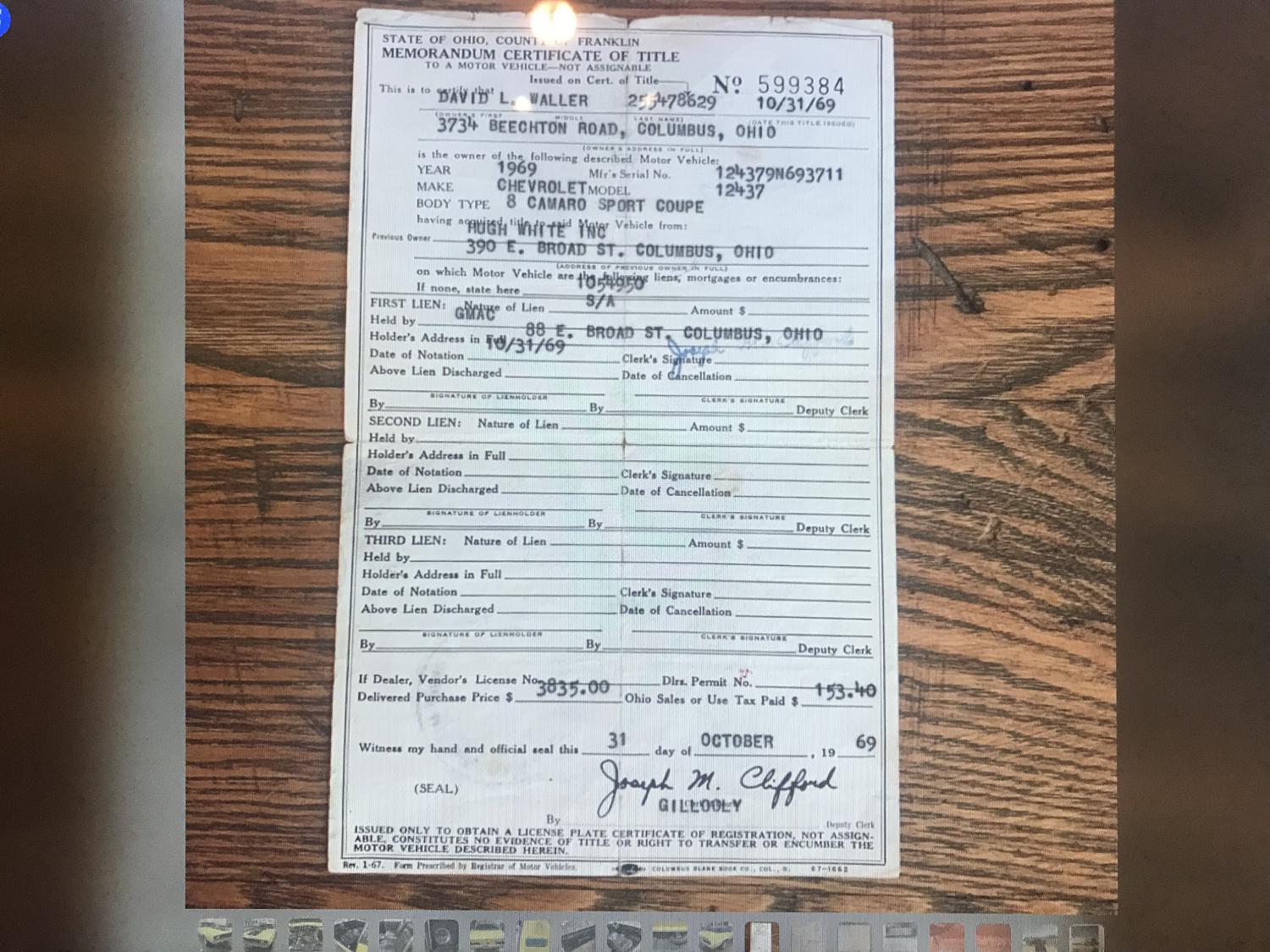I have decided to sell my 69 COPO Camaro that I have had a couple years. It is a well known and very well documented car. The car was sold new at Hugh White Chevrolet in Columbus Ohio it comes with protect-plate, original sales invoice, finance papers and several old pictures from its early years with the original owner. It is Daytona yellow, with a dealer added black vinyl top which is documented in the paperwork. It is a true 8,300 mile car with 85 percent original paint, automatic on the floor all original very nice black interior, born with BE rear and CX trans but the engines short block was replaced under warranty. This car still has the original heads, intake, carb, distributor, anti dieseling switch, kick down switch, and smog system manifolds etc. I am the fourth owner I acquired the car from Greg Nuge you may have seen it at MACAN in the day 2 display a few years back or at the Super Car Show. I will try to post the few pictures I have here but if interested message me. $160K