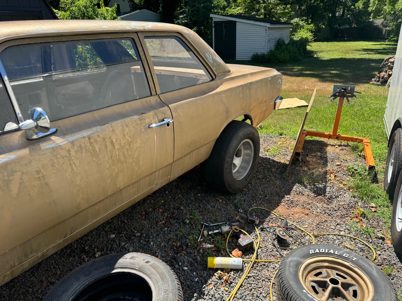 Built the rear with my dad on Memorial Day. Measured for the steering linkage. Pretty soon it’ll be moved into the garage so the bodywork and other repairs can start. I also need to figure out the Ladder bars for it.